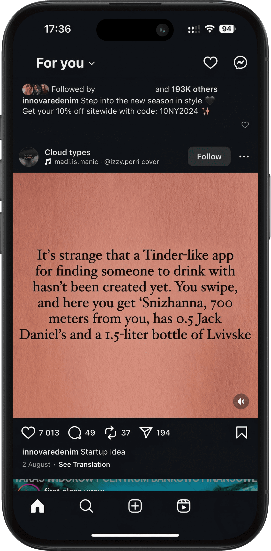 Tinder-style interface. See who's nearby and ready to go out right now.