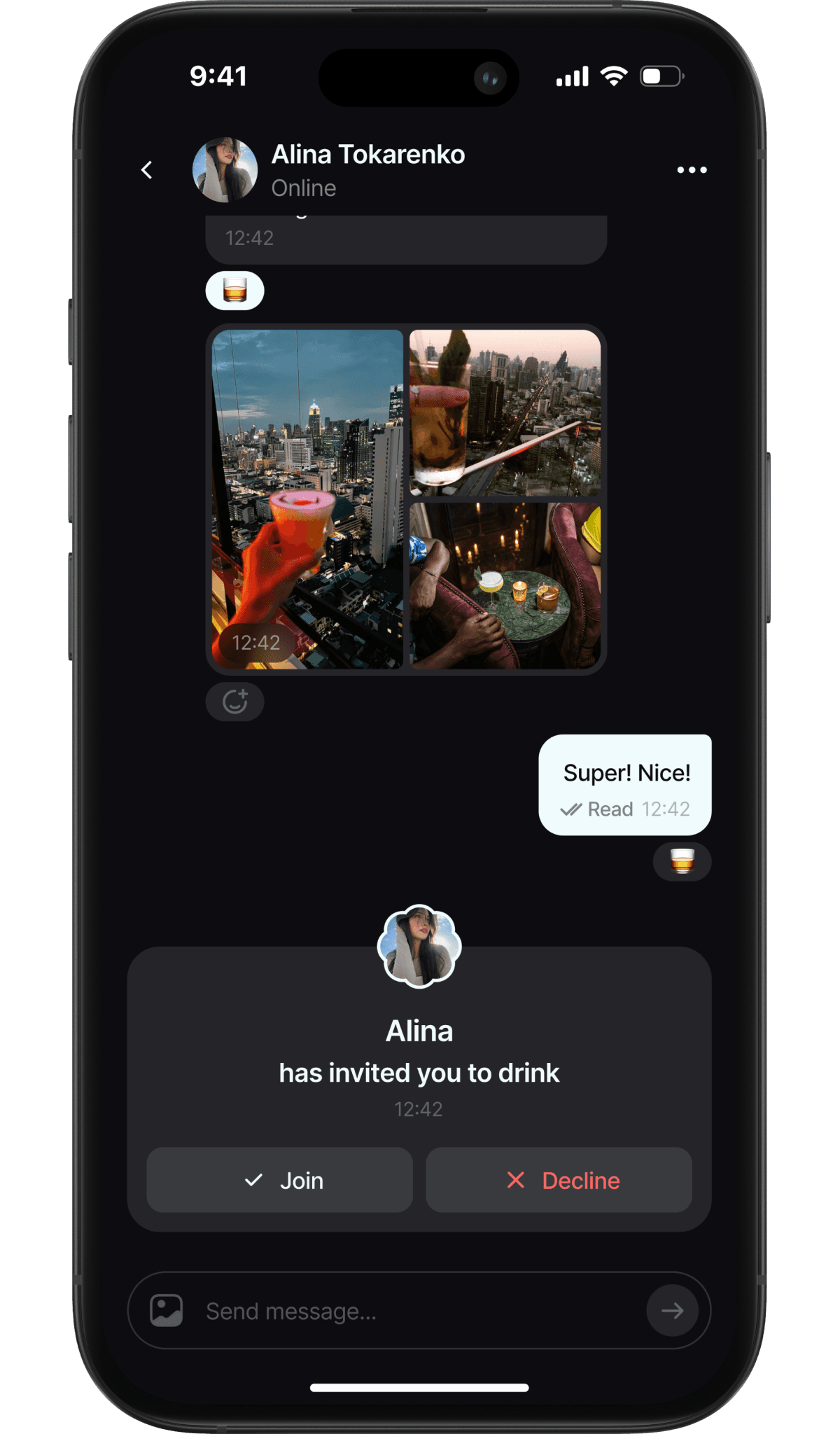 Bar hop, chill drinks, wine night, party mode — match your energy with theirs.